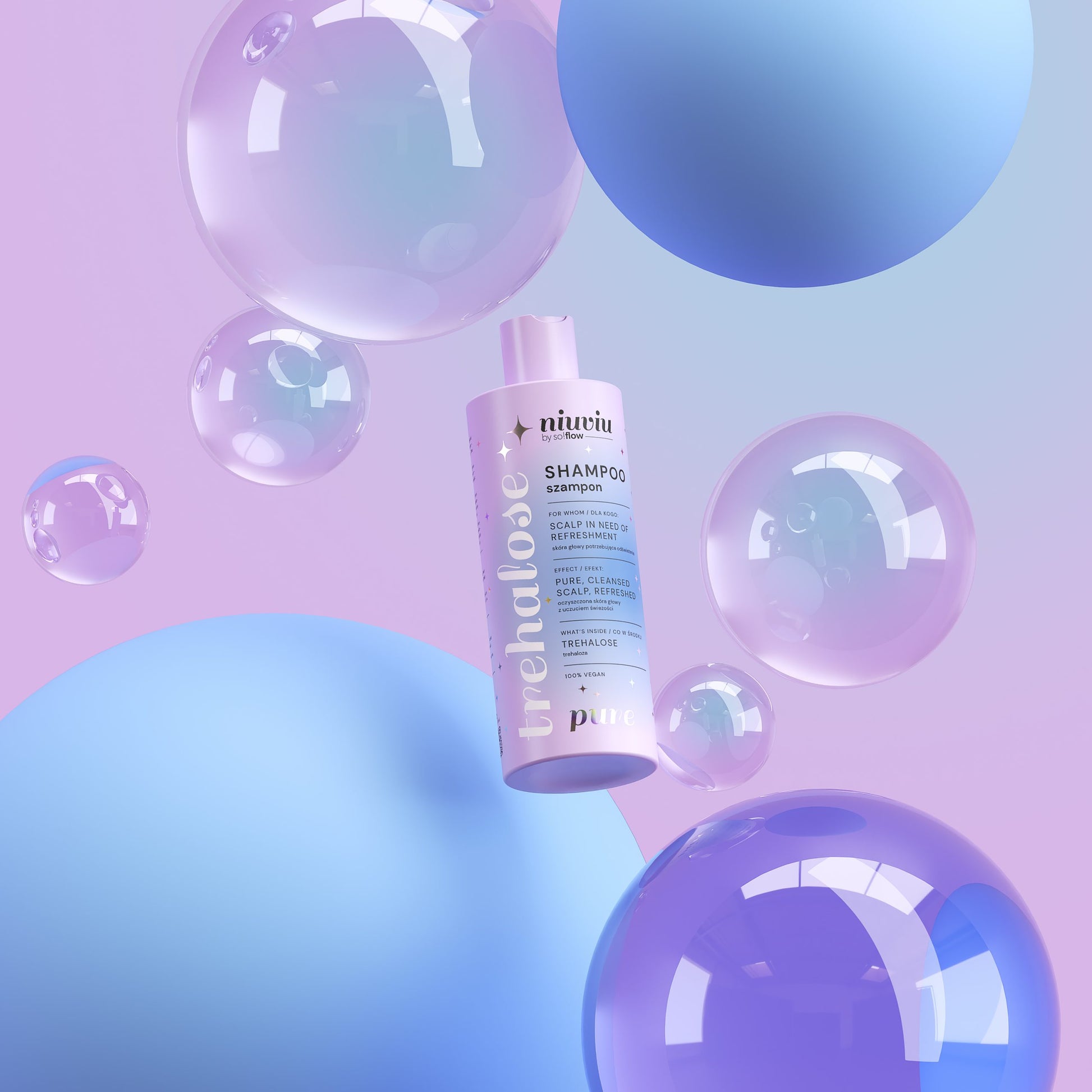 Niuviu Pure Shampoo with trehalose is a vegan shampoo that gently yet effectively cleanses the scalp and hair. Thanks to natural micro-grains, it removes dead skin cells, providing a feeling of freshness and lightness from the very first use. It is the perfect solution when your scalp needs refreshing and your hair needs lightness and energy.